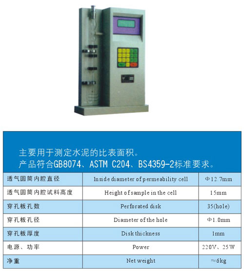 SBT-127型數(shù)顯勃氏透氣表面積測定儀